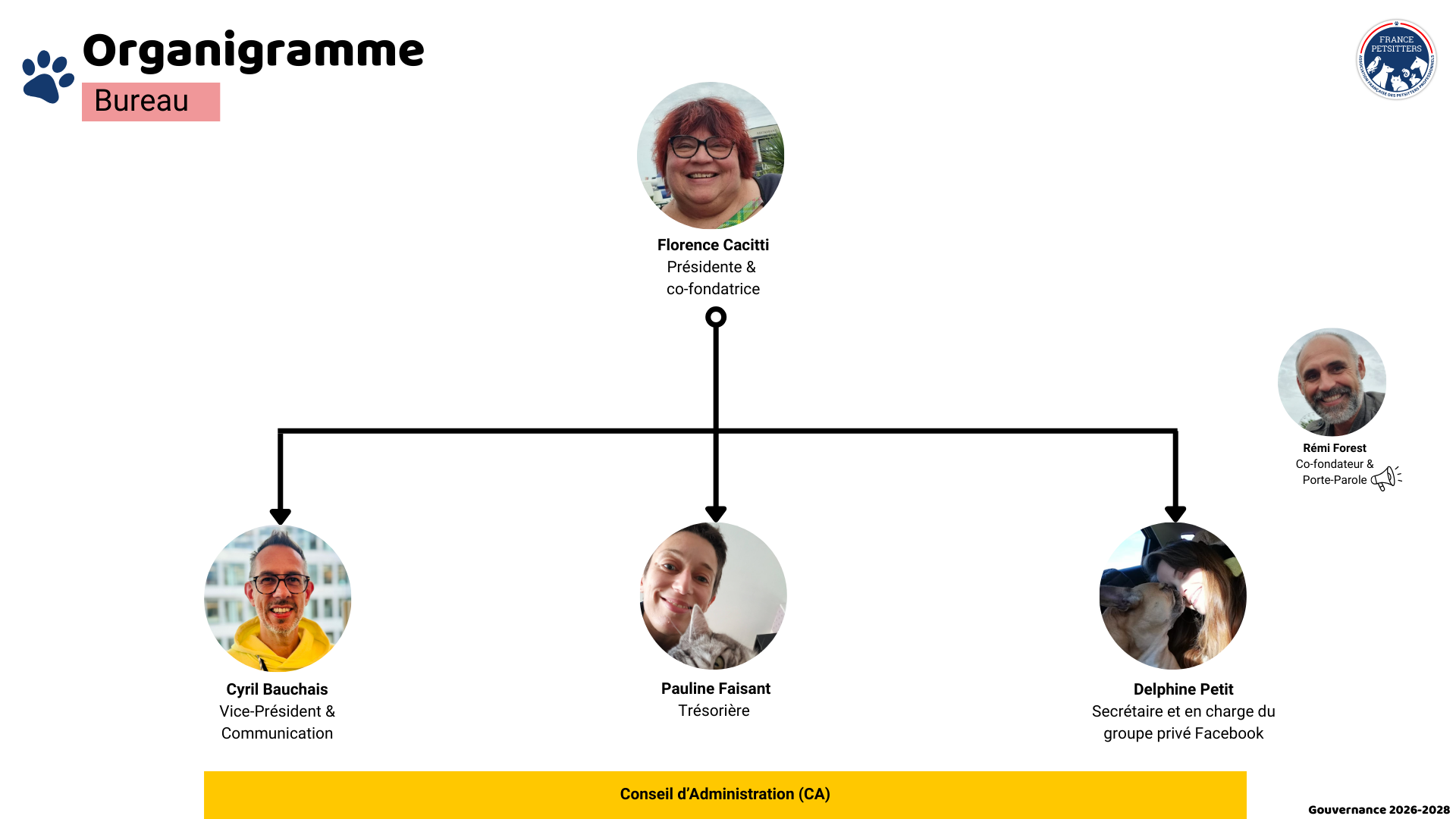 L’association France Petsitters a le plaisir d’annoncer la nouvelle composition de son Conseil d’Administration (CA) pour la mandature 2026–2028, élue lors de l’Assemblée Générale Ordinaire du 11 décembre 2025.